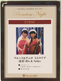 【MY PLAZA JOY】ミュージック・ライブ April ! チェロ&バイオリン&ピアノ《Classic》に